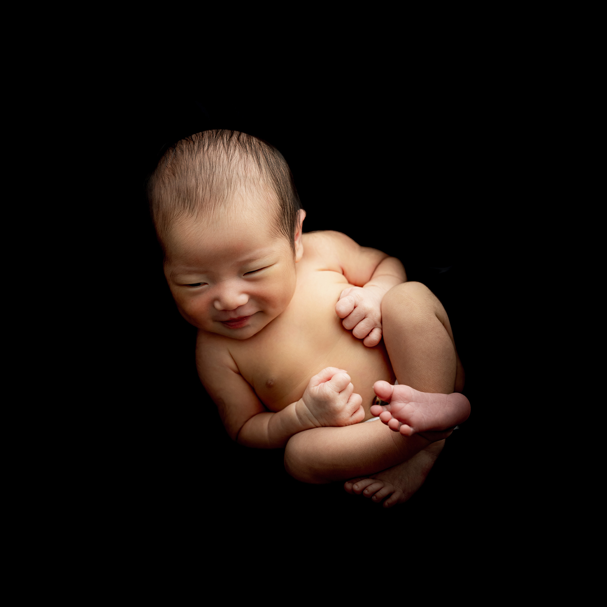 黒バックで残す、シンプルで神秘的なニューボーンフォト